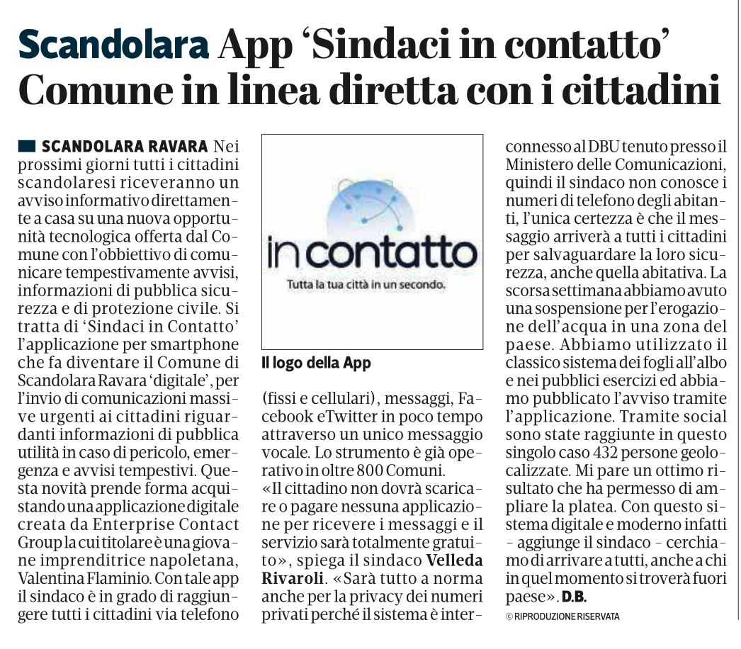 L’Amministrazione Comunale di Scandolara Ravara ha attivato un sistema innovativo di comunicazione massima per la diramazione di allerta in caso di necessità “Sindaci in Contatto”. Per tutti i dettagli consulta l’allegata informativa.